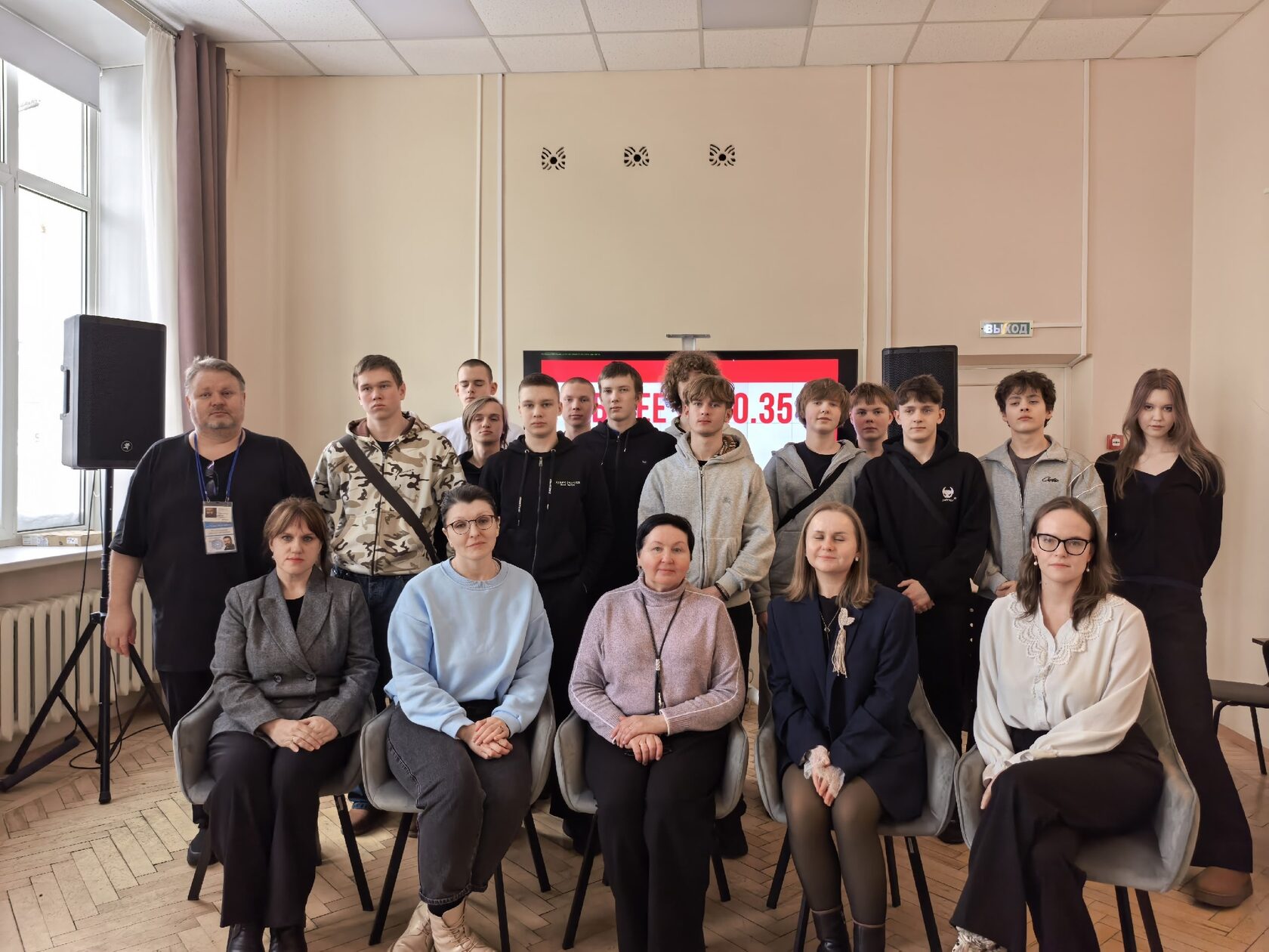 На встрече присутствовали студенты строительного техникума, представители Вологодского поискового отряда и волонтеры. Правда большинство волонтеров были на своих рабочих местах. Но их труд и их лица мы видели в видеопрезентации, подготовленной членом проектной команды, фотографом Михаилом Трапезниковым.